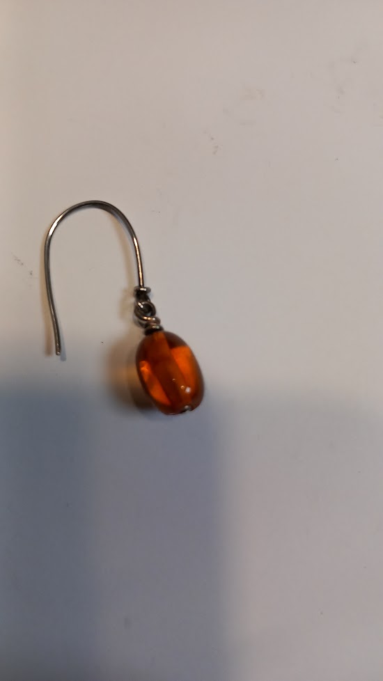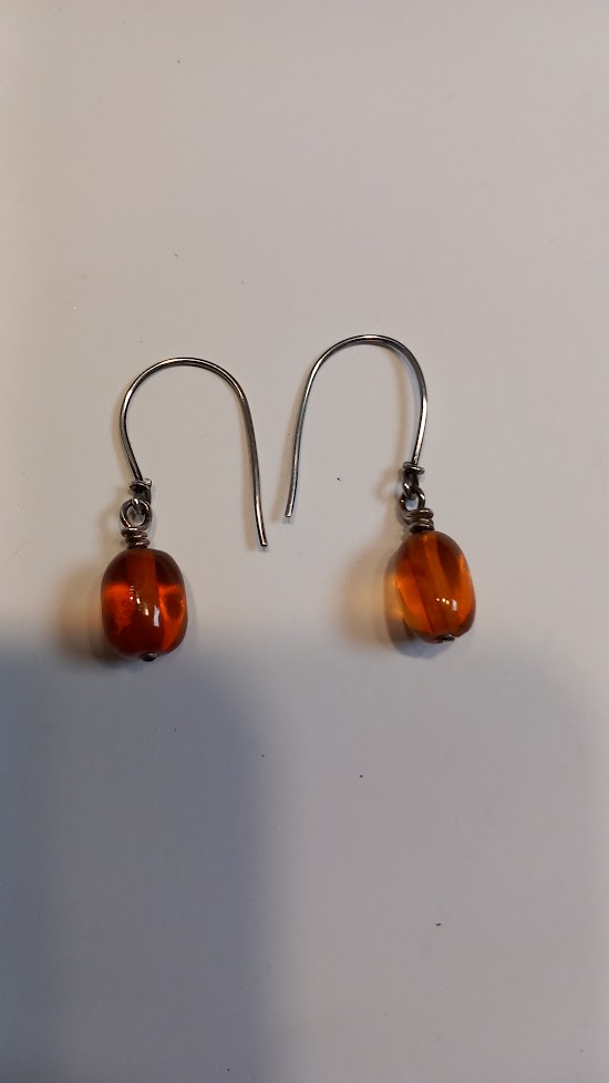 Handgefertigte Ohrhänger aus 925‰ Silber mit Bernstein (ca. 12 × 8 mm).