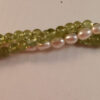 Weiße Perlen kombiniert mit Olivin (hell grün) und einem 925 ‰ Silberverschluß ,der Schmückend an der Seite zu Tragen ist, falls man es mag.
